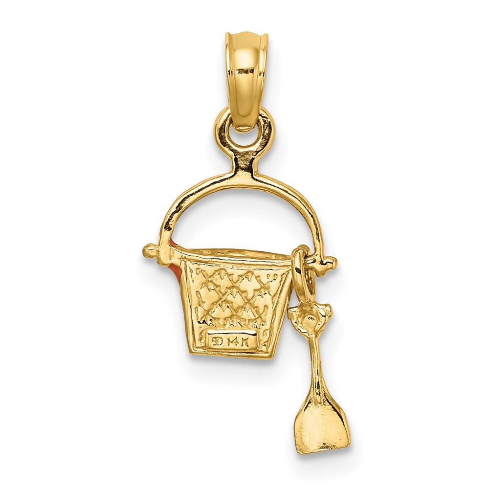 14K 2-D Orange Enameled Beach Bucket with Moveable Shovel Charm
