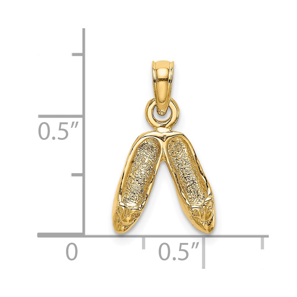 14K 3-D Polished Textured Ballerina Slippers Charm