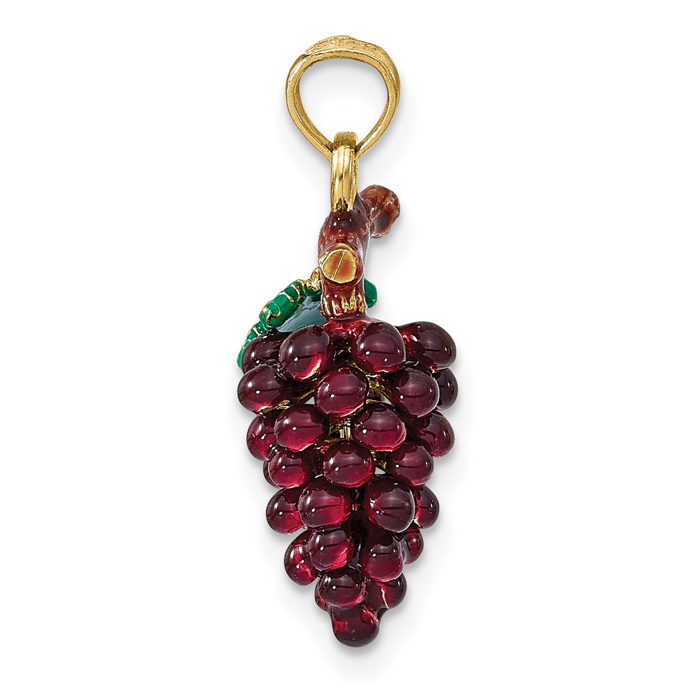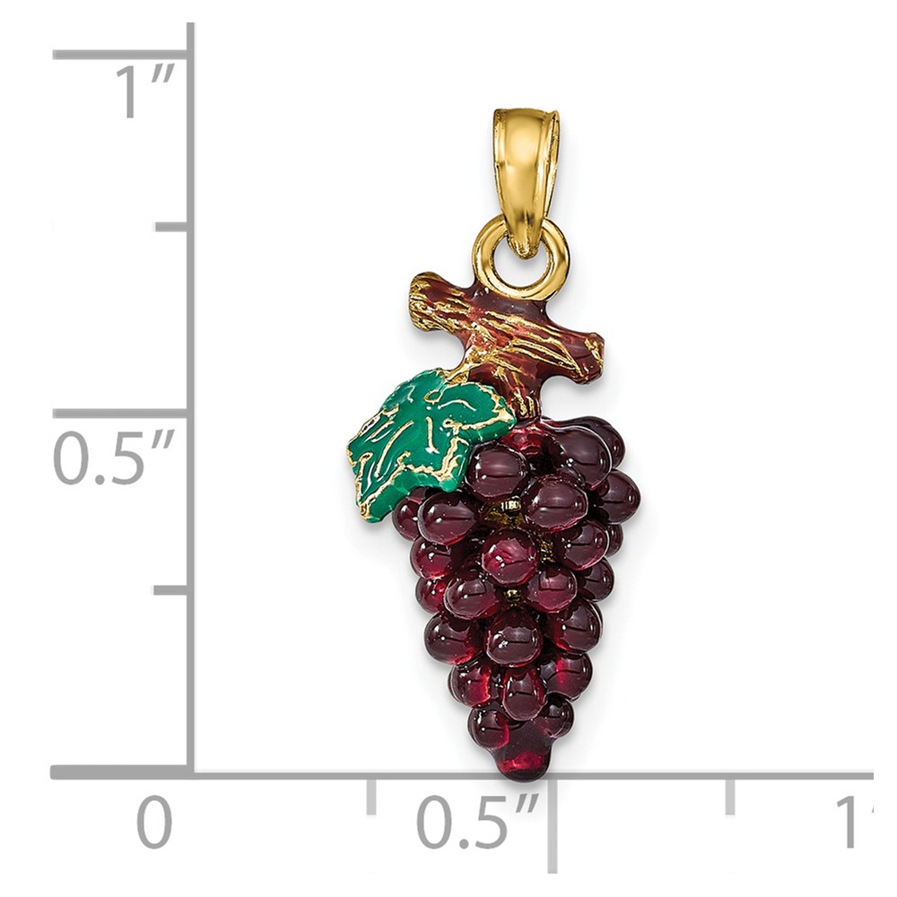 14K 3-D Purple and Green Enameled Grapes with Stem and Leaf Charm