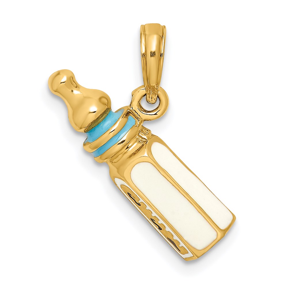 14K 3-D with Blue Enamel Baby Bottle Charm