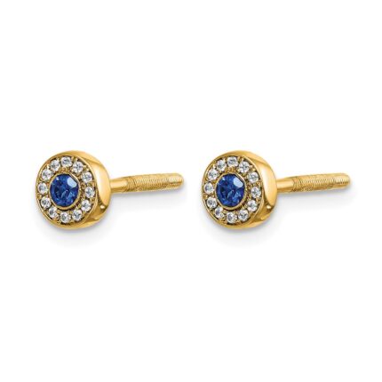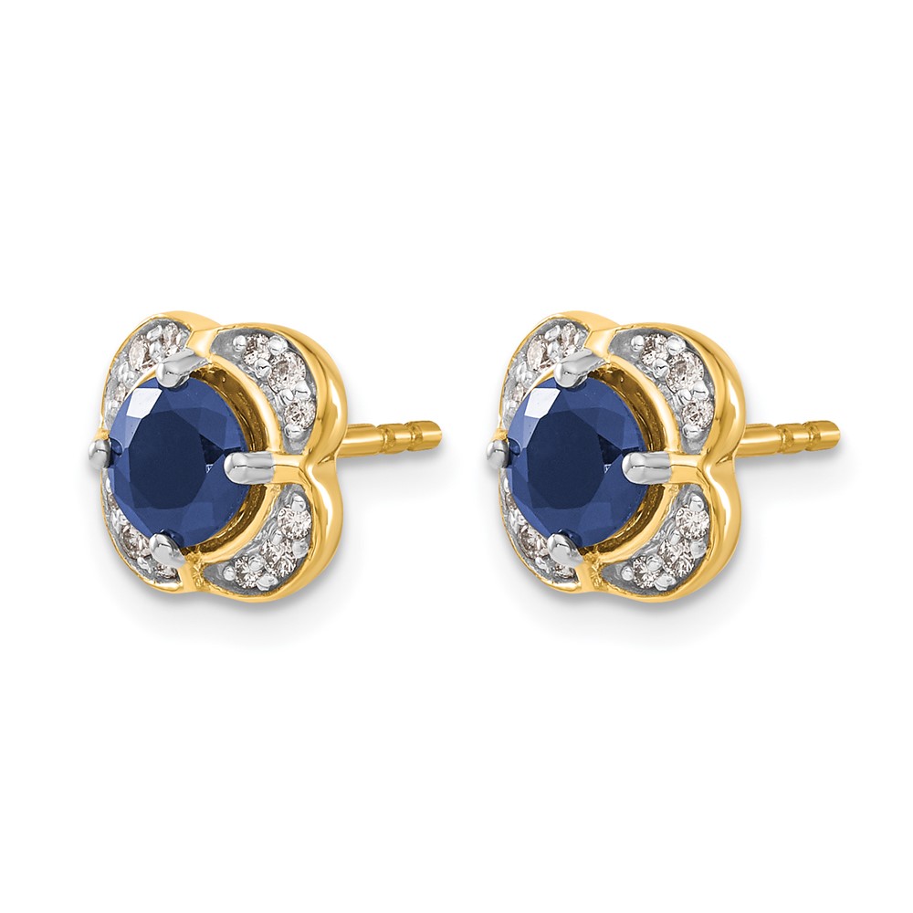 14k 5.2mm Round Sapphire and Diamond Fancy Square Post Earrings