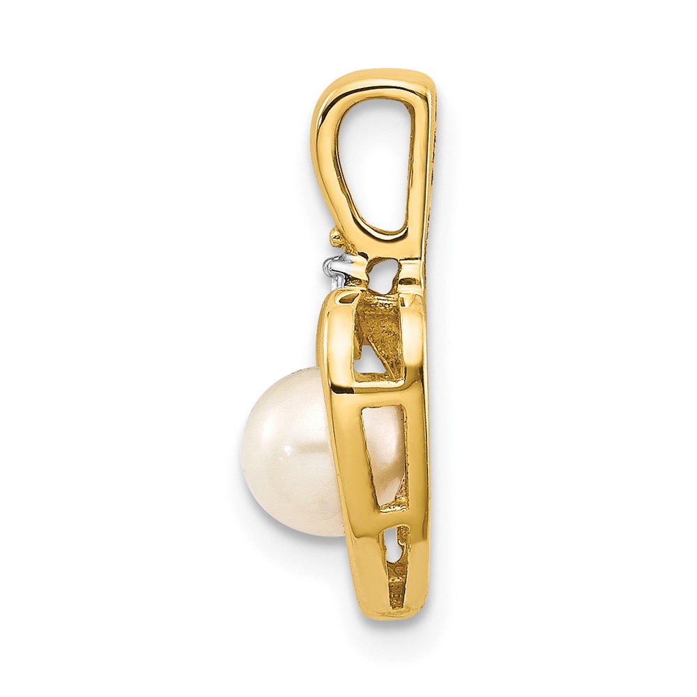 14k 5.5mm June/Freshwater Cultured Pearl and Diamond Heart Pendant