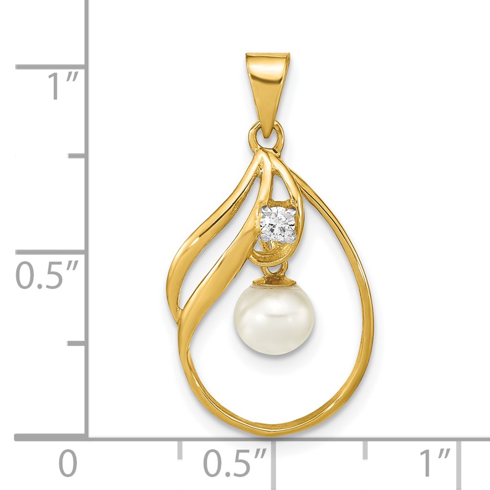 14k 5-6mm White Round Freshwater Cultured Pearl and .05 Carat Diamond Pendant