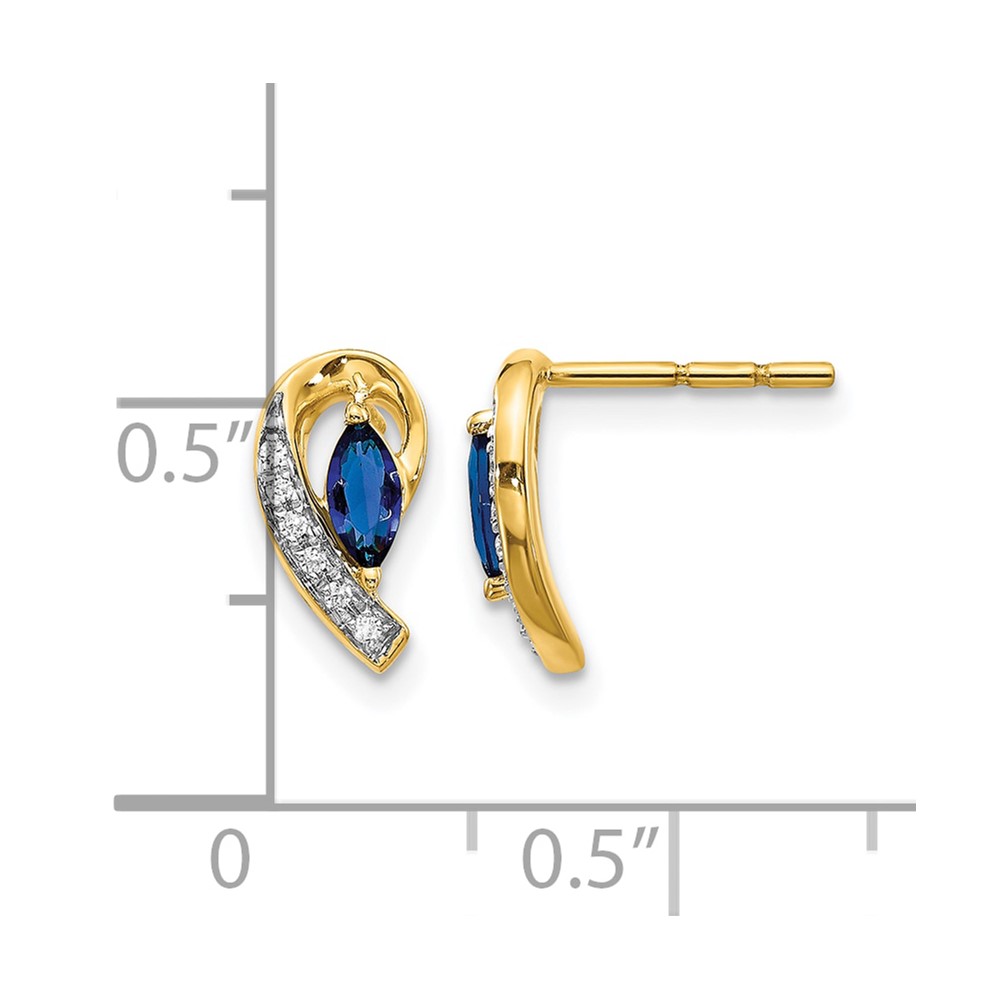 14k 5×2.5mm Marquise Sapphire and Diamond Curved Post Earrings
