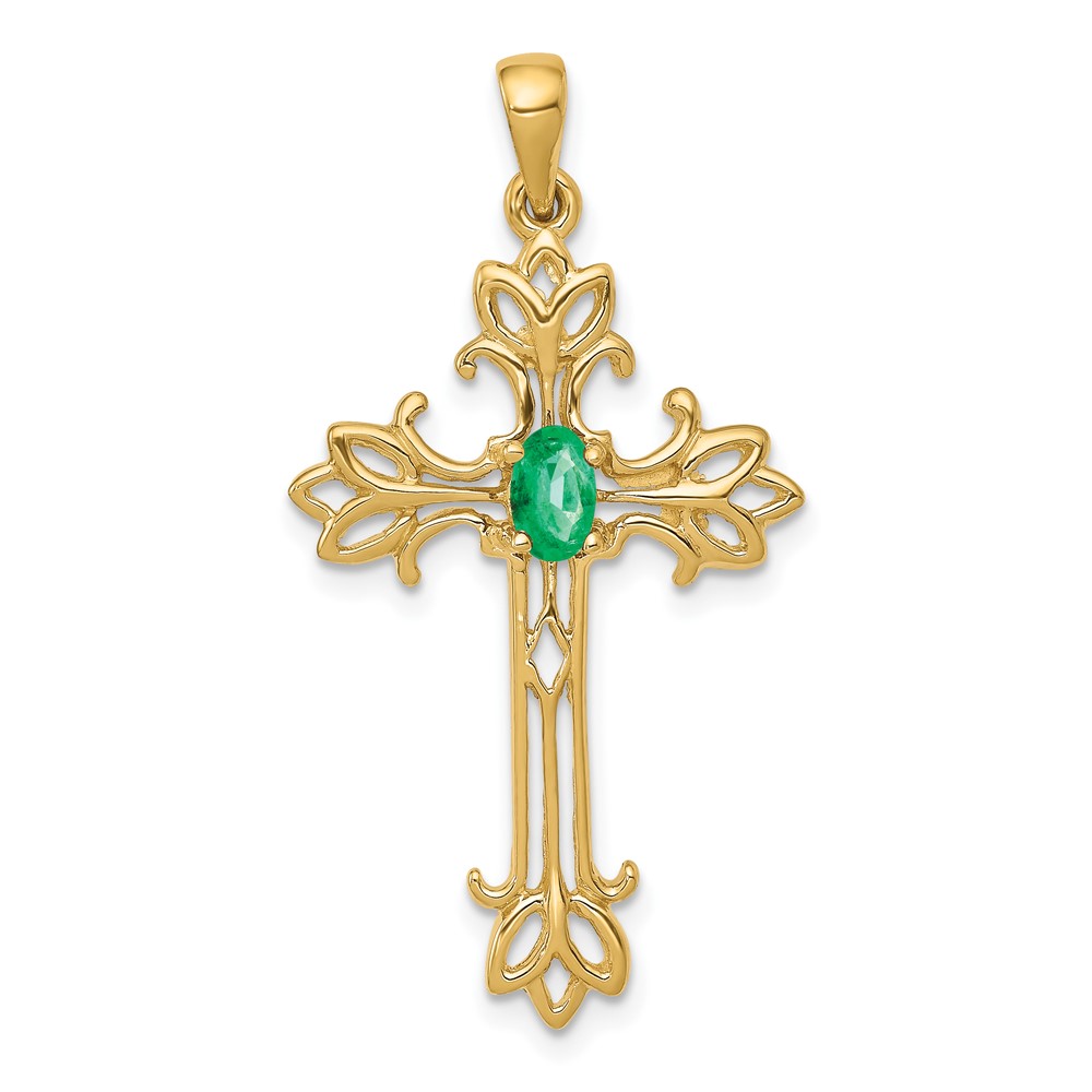 14k 5x3mm Oval Emerald Cross Pendant