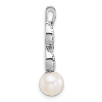 14k 6-7mm Near Round White Freshwater Cultured Pearl and AA Diamond Pendant