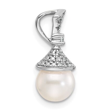 14k 6-7mm Pink Round Freshwater Cultured Pearl and .03 Carat Diamond Pendant