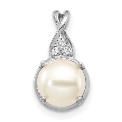 14k 6-7mm White Round Akoya Saltwater Cultured Pearl and .03 Carat Diamond Pendant