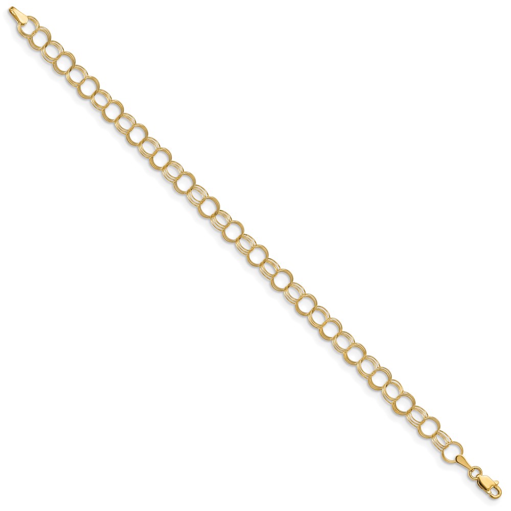 14k 6mm Solid Triple Link Charm Bracelet