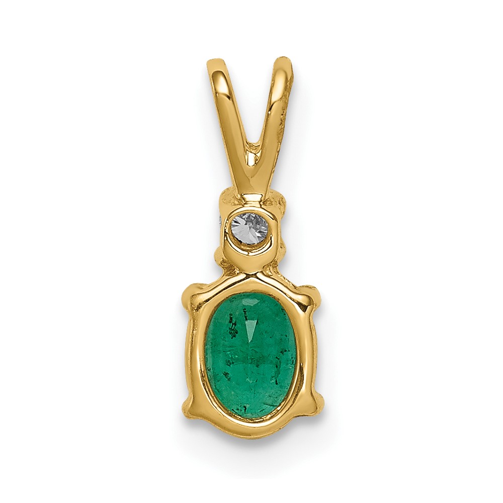 14k 6x4mm Oval Emerald and AA Diamond Pendant