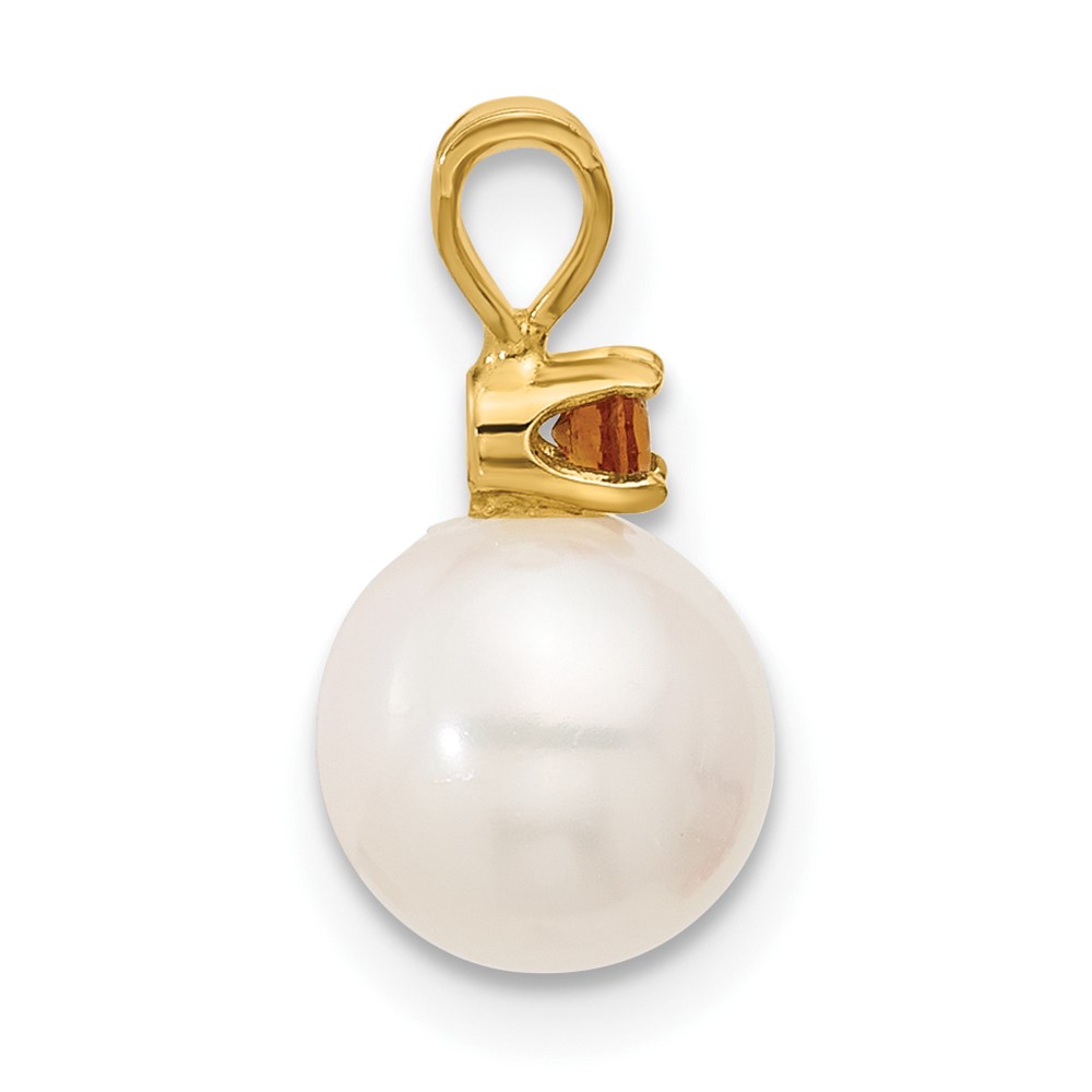 14k 7-7.5mm White Round Freshwater Cultured Pearl and .07CI Citrine Pendant