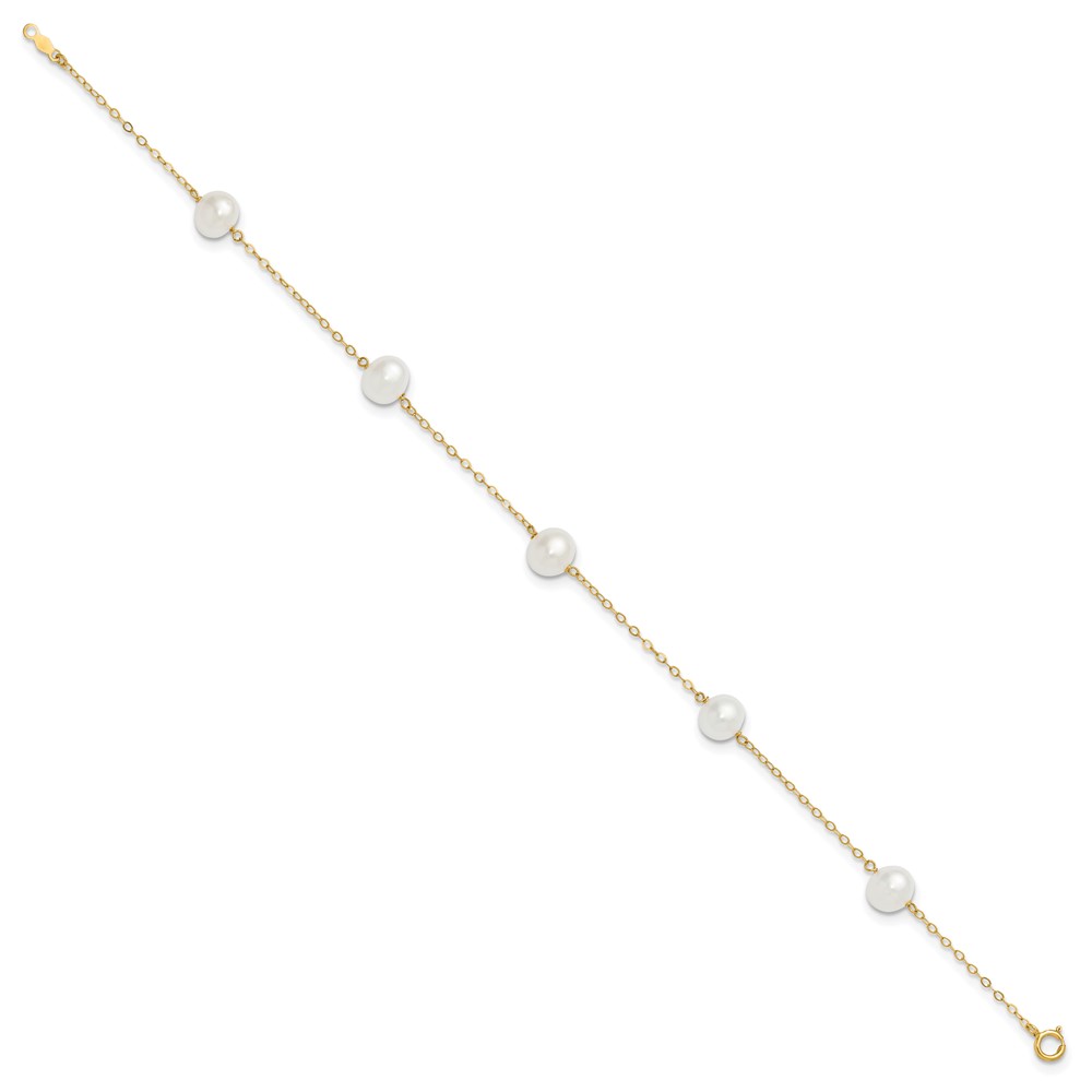 14k 7-8mm White Near Round Freshwater Cultured Pearl 5-station Anklet
