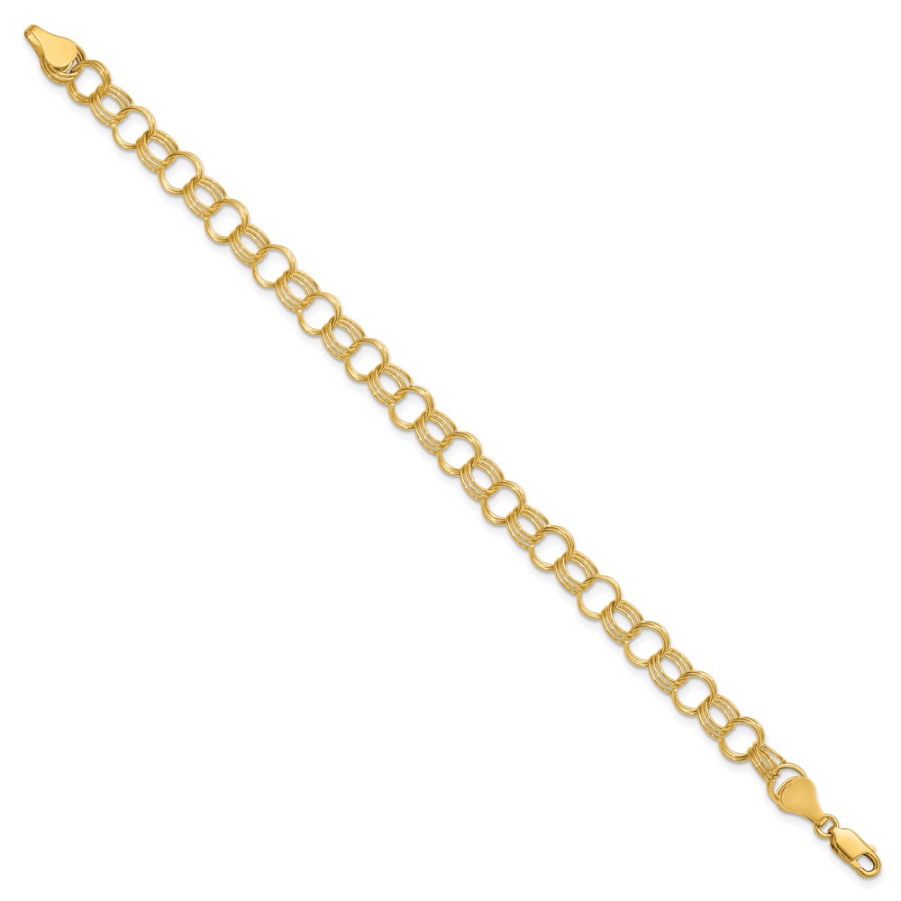 14k 7mm Solid Triple Link Charm Bracelet