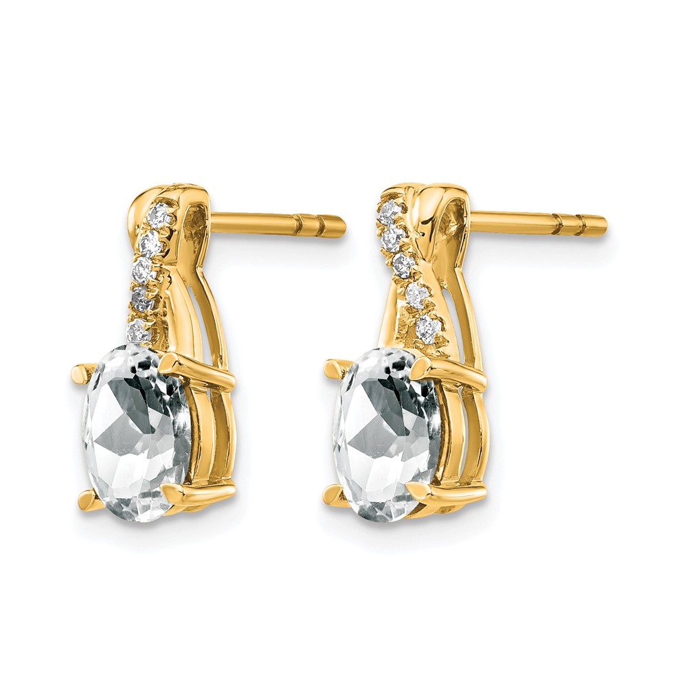 14k 7×5 Oval April/White Topaz and Diamond Post Earrings