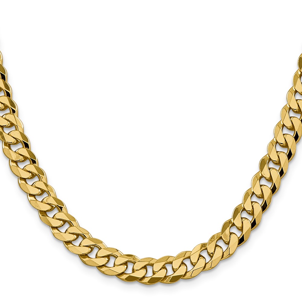 14K 8.5mm Flat Beveled Curb with Lobster Clasp Chain