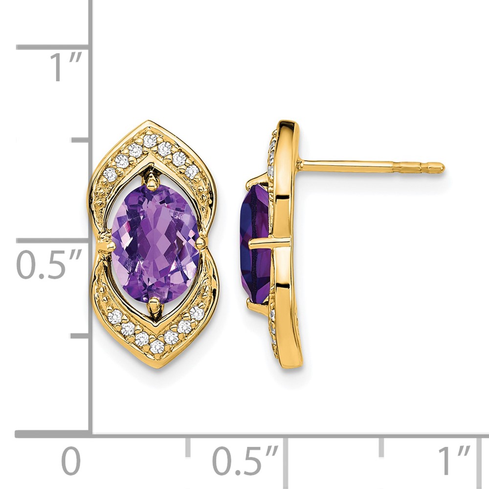 14k Amethyst and Diamond Post Earrings
