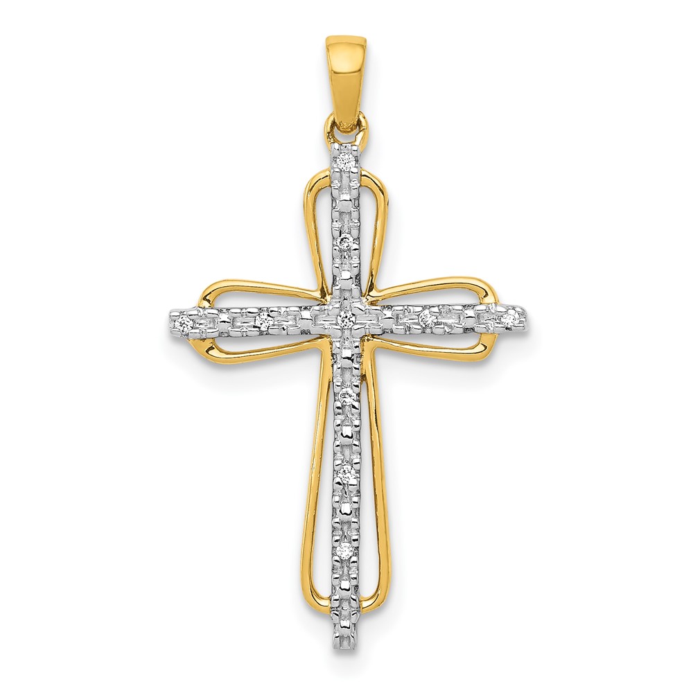 14k and White Rhodium .03 carat Diamond Cross Pendant