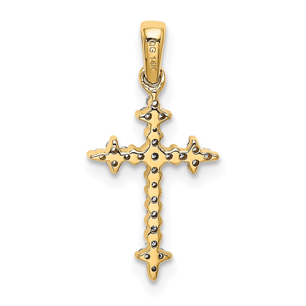 14k and White Rhodium 1/10 carat Diamond Fleur de Lis Cross Pendant