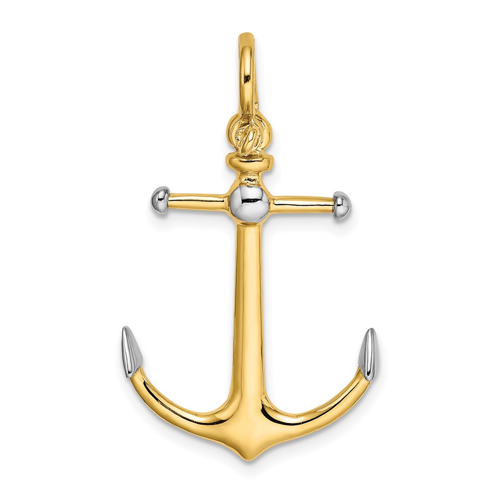 14K and White Rhodium 3-D Anchor with Long T-Bar and Shackle Bail Charm