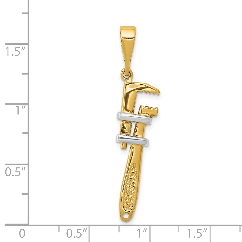 14K and White Rhodium 3-D Pipe Wrench Charm