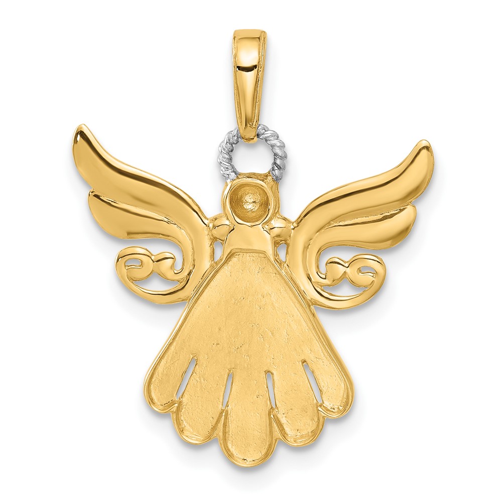 14k and White Rhodium Diamond-cut Angel Pendant
