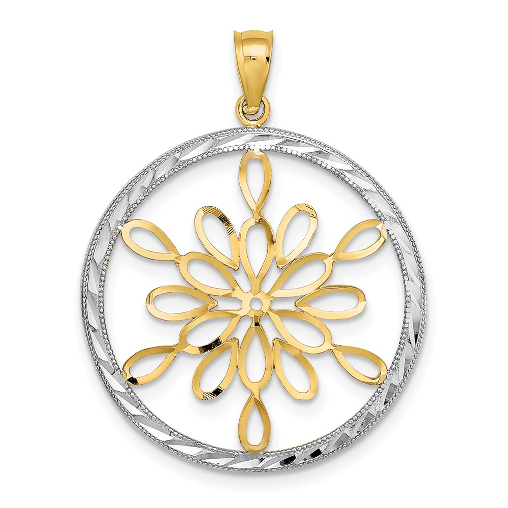 14K and White Rhodium Diamond-cut Circle Snowflake Charm