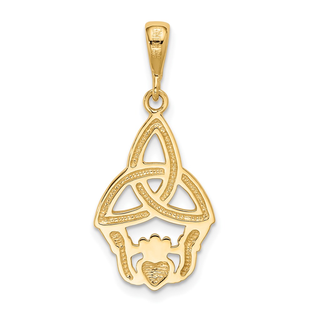 14K and White Rhodium Diamond-cut Claddagh Trinity Knot Pendant