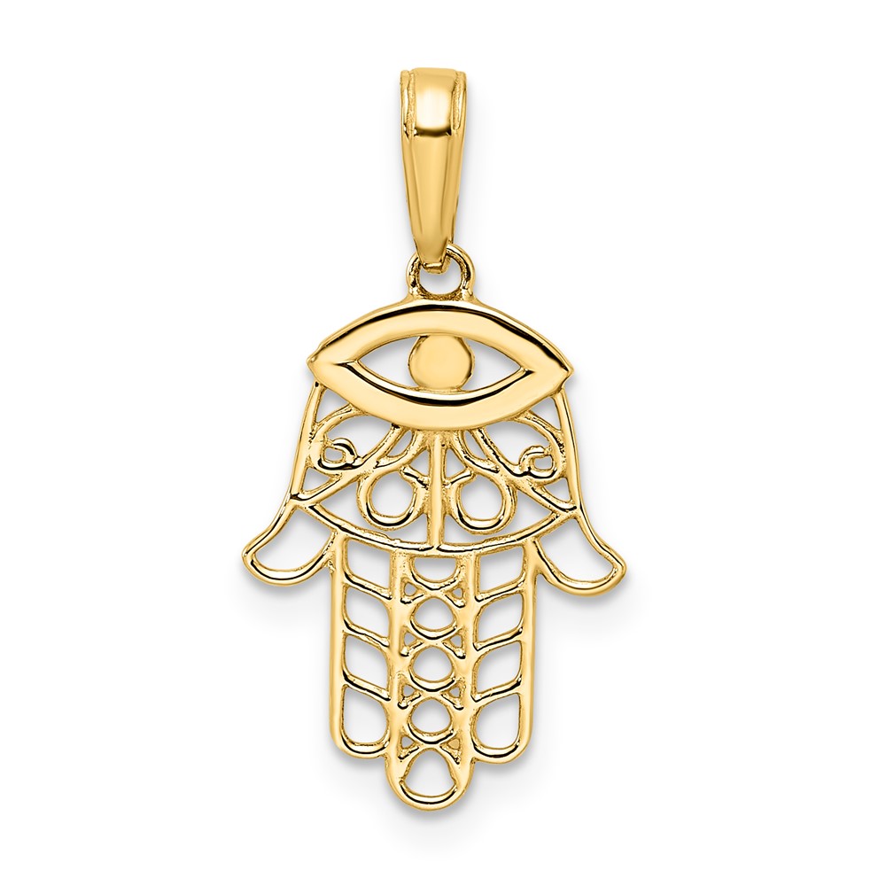 14k and White Rhodium Diamond-cut Evil Eye Filigree Hamsa Pendant