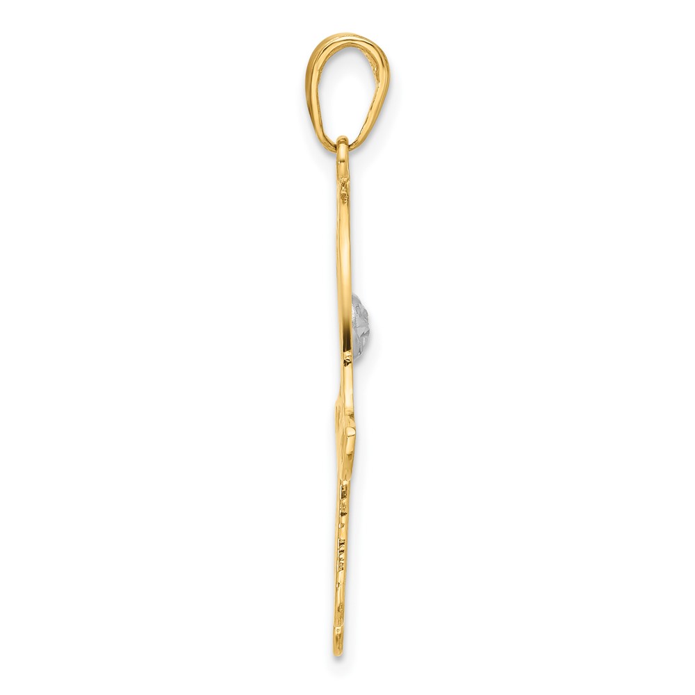 14k and White Rhodium Diamond-cut Filigree Hamsa Pendant