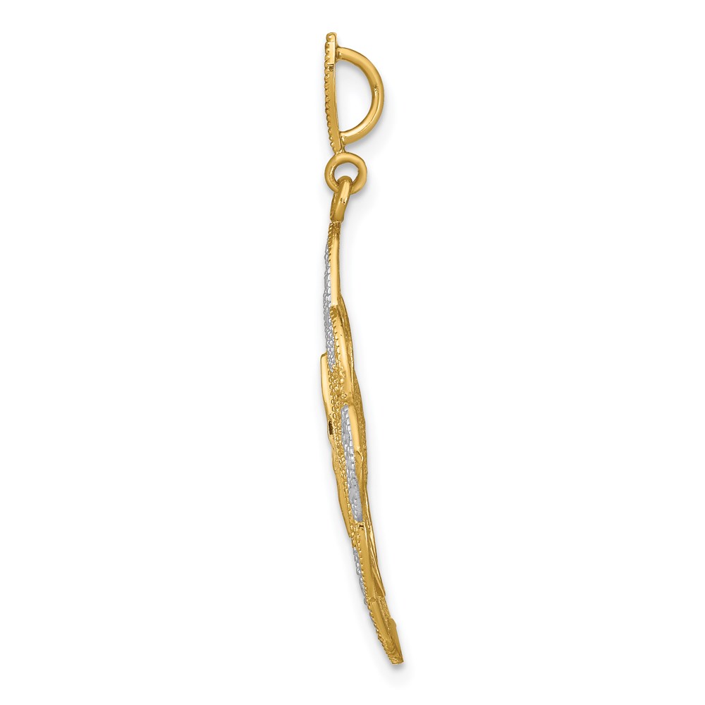 14k and White Rhodium Diamond-cut Filigree Oval Charm