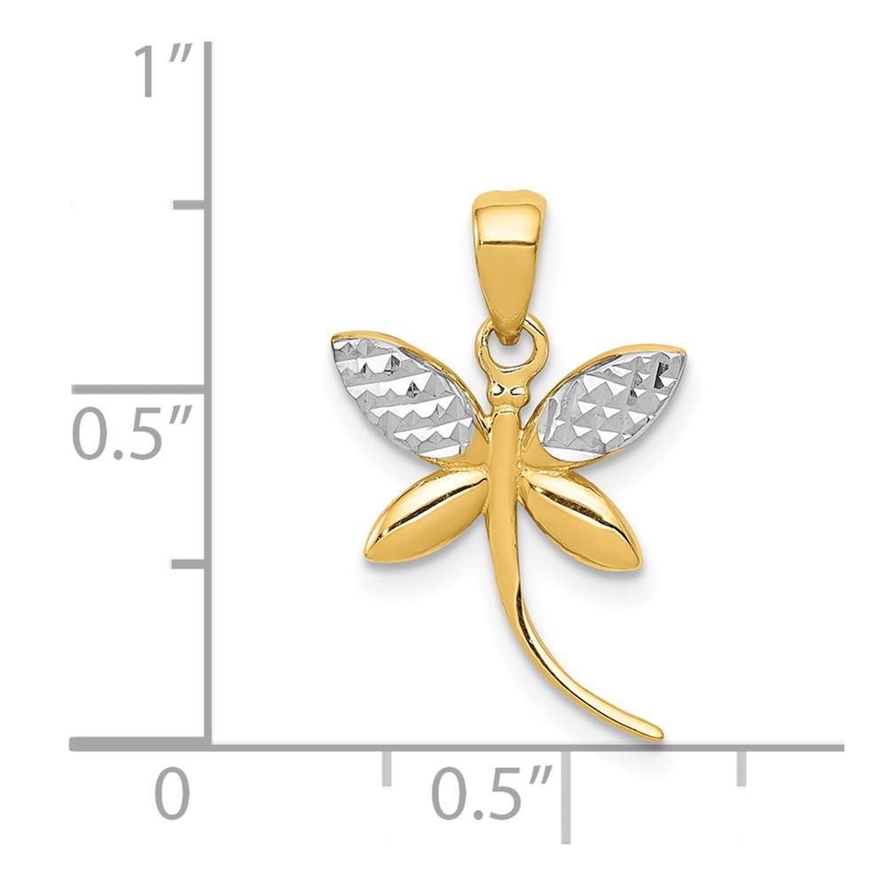 14k and White Rhodium Diamond-cut Polished Dragonfly Pendant