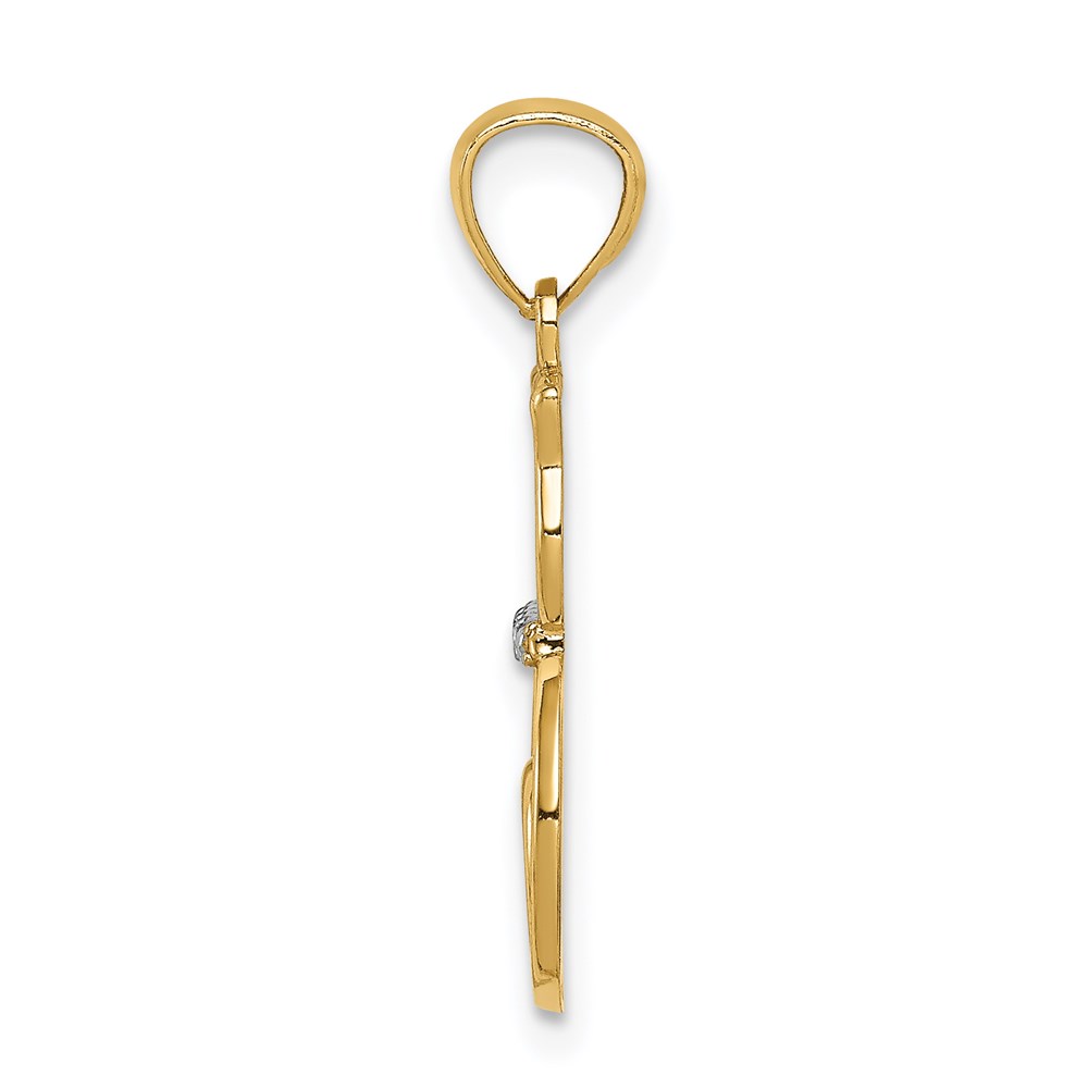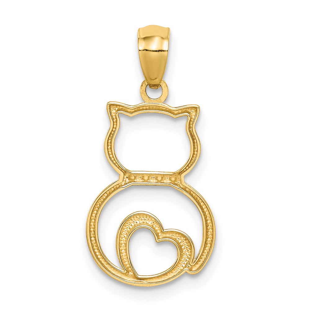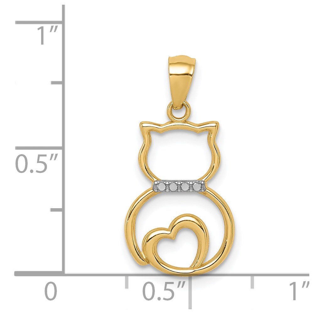 14k and White Rhodium Diamond-cut Sitting Cat with Heart Pendant