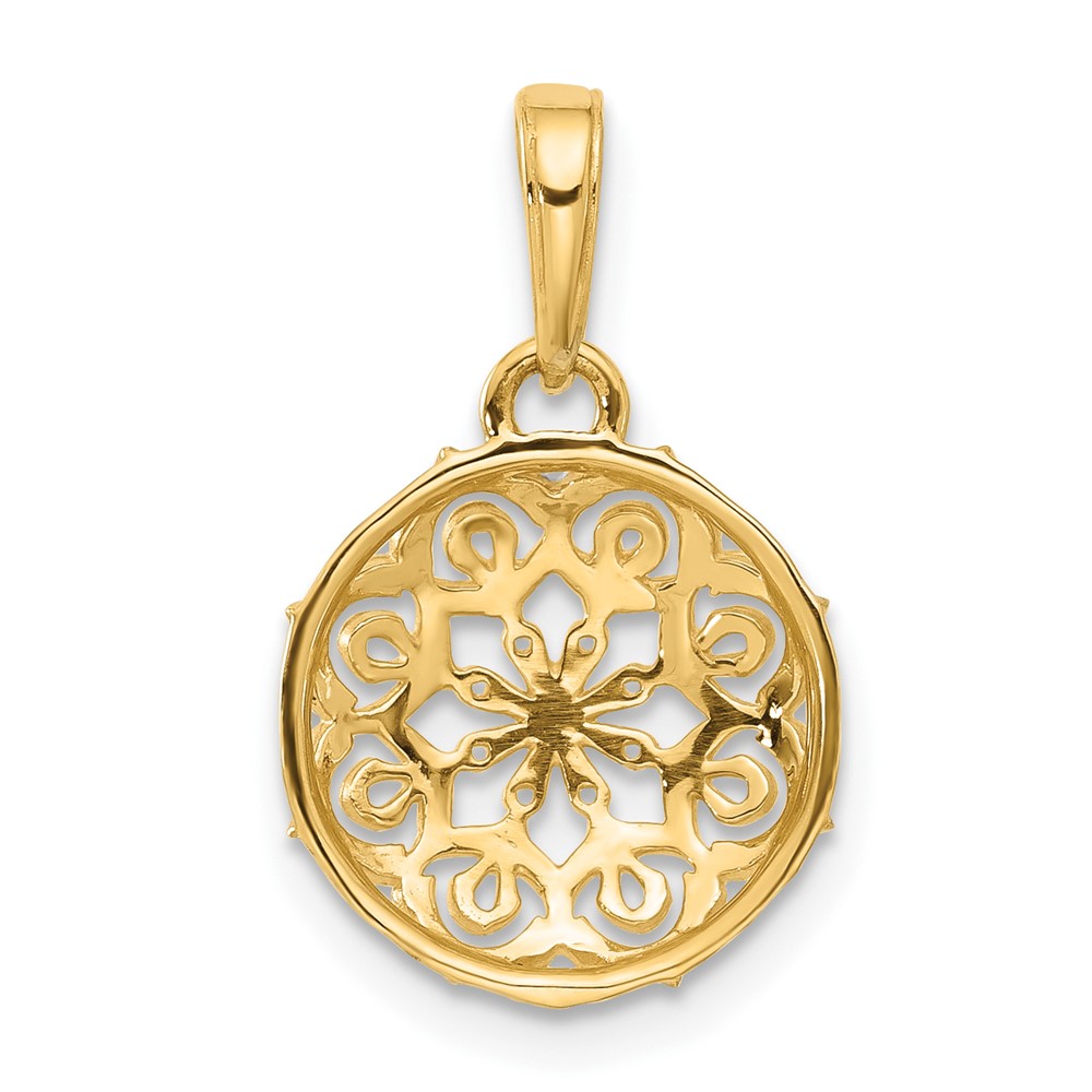 Be the first to review “14k and White Rhodium Floral Design Circle Pendant” Cancel reply