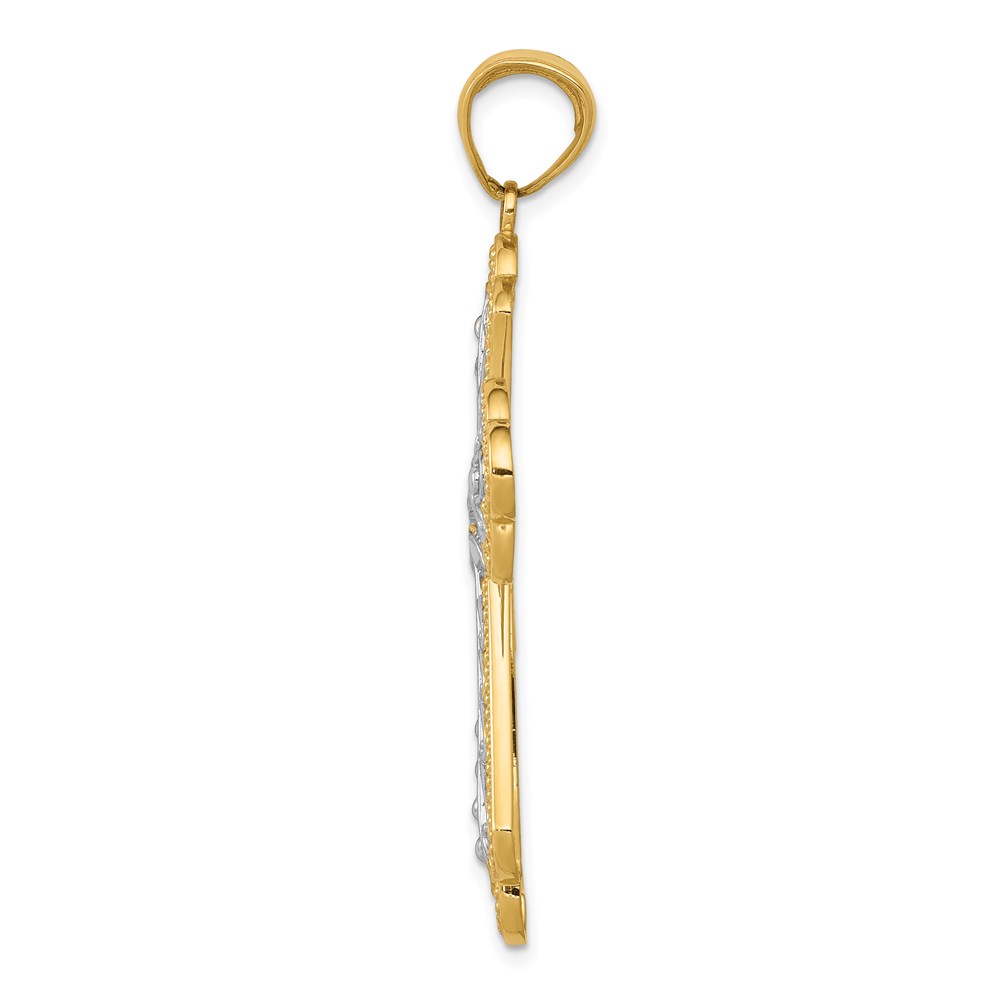 14K and White Rhodium Large Diamond-cut Filigree Cut-out Cross Pendant