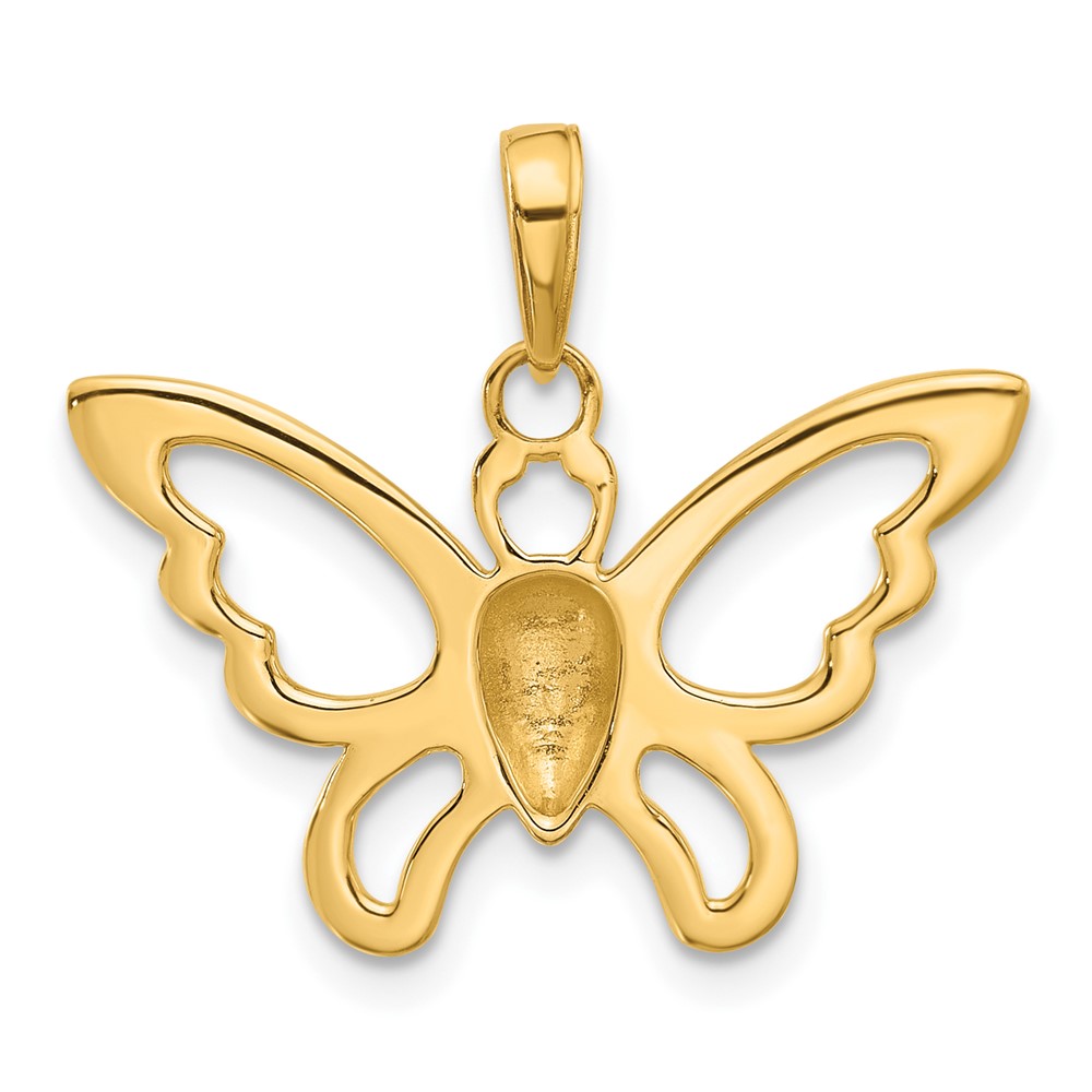 14K and White Rhodium Polished and Diamond-cut Butterfly Pendant