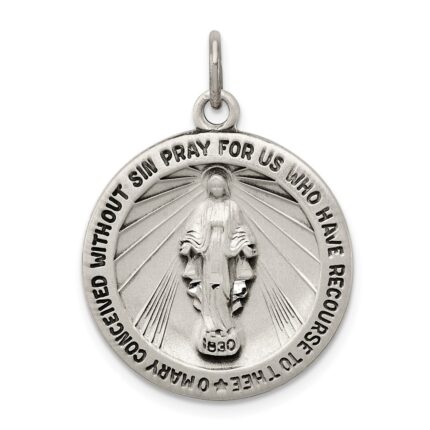 Be the first to review “14K and White Rhodium Polished and Satin Solid Miraculous Medal Oval Pendant” Cancel reply