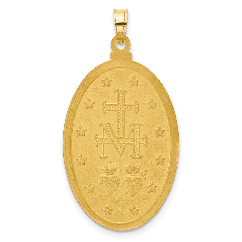 14K and White Rhodium Polished and Satin Solid Miraculous Medal Oval Pendant