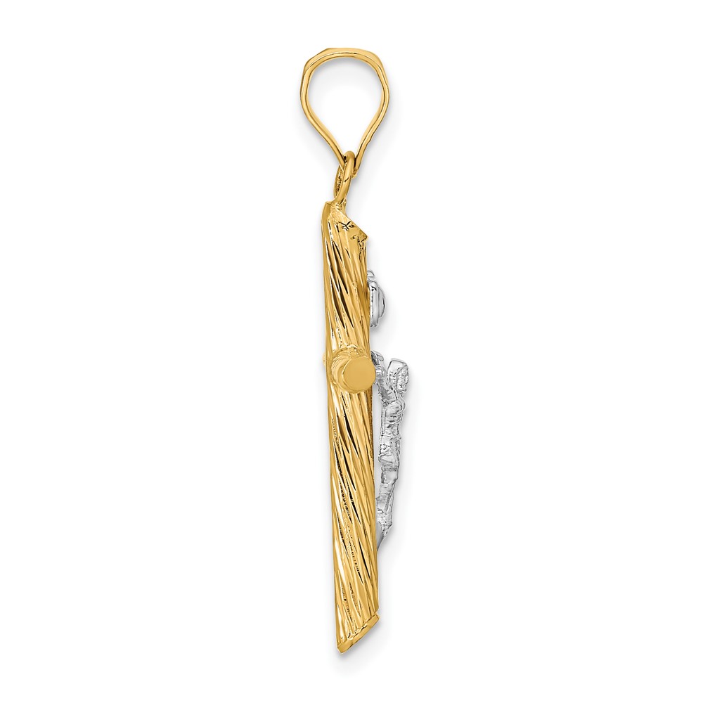 14K and White Rhodium Polished and Textured INRI Crucifix Cross Pendant