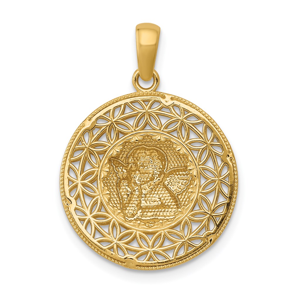 14k and White Rhodium Polished Filigree Guardian Angel Pendant