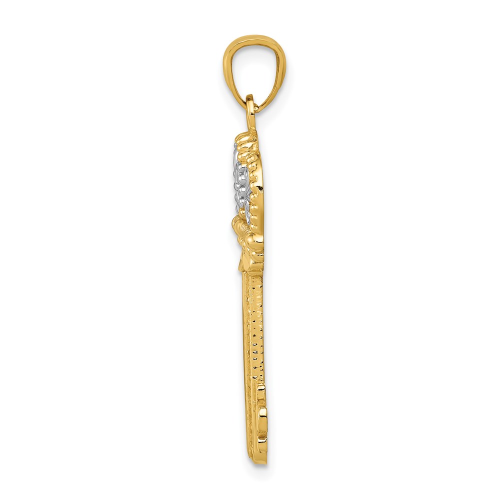 14K and White Rhodium Polished Fleur De Lis Crown Key Charm