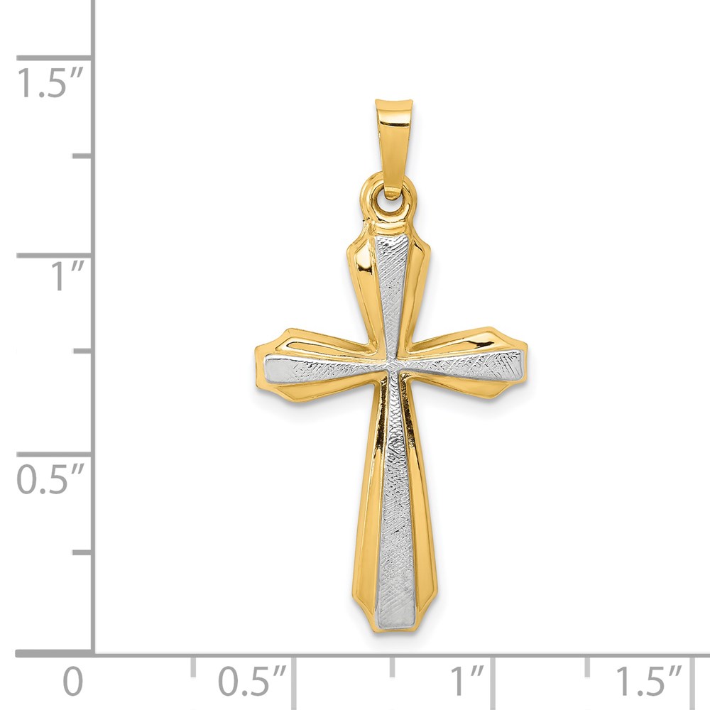 14K and White Rhodium Textured and Polished Passion Cross Pendant