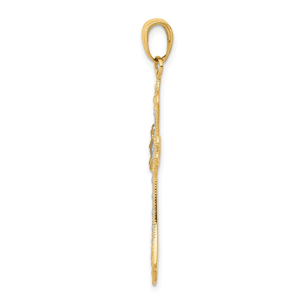 14k and White Rhodium Textured Cross Pendant