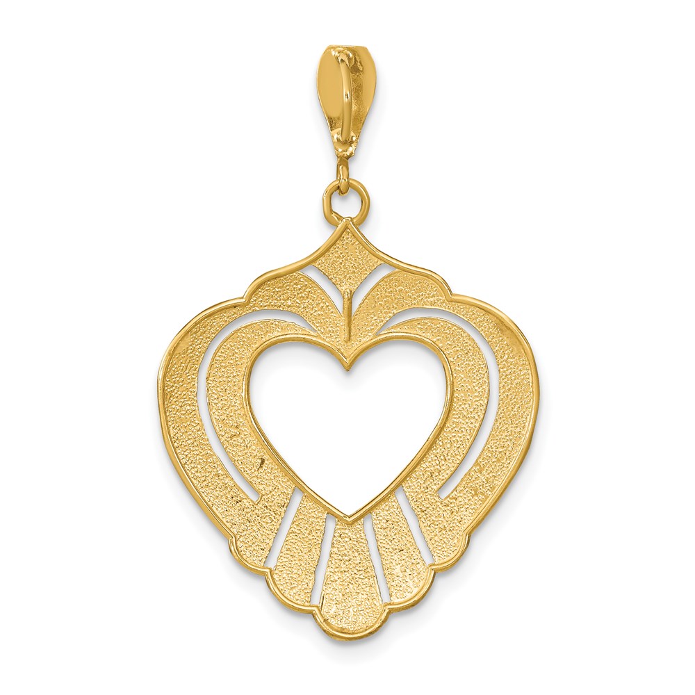14k and White Rhodium Textured Cut-Out Heart Charm