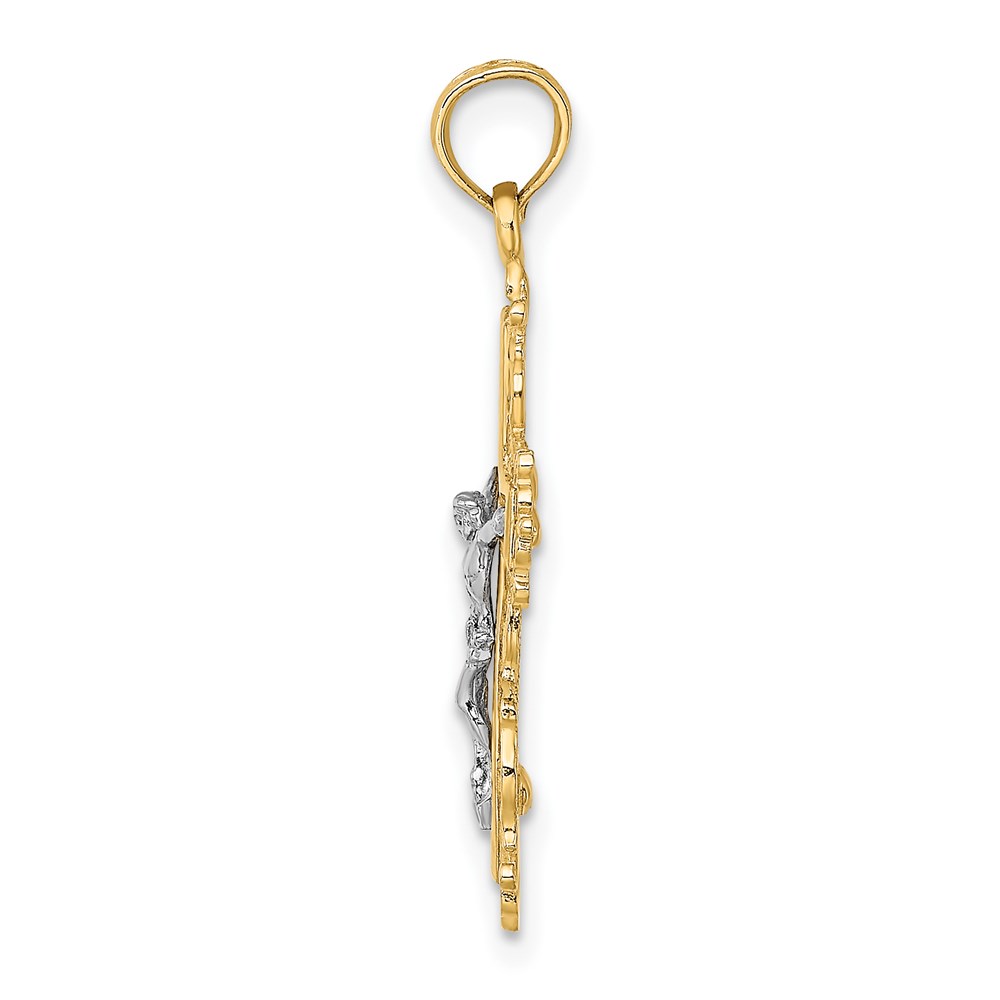 14K and White Rhodium Textured Lace Trim Crucifix Charm