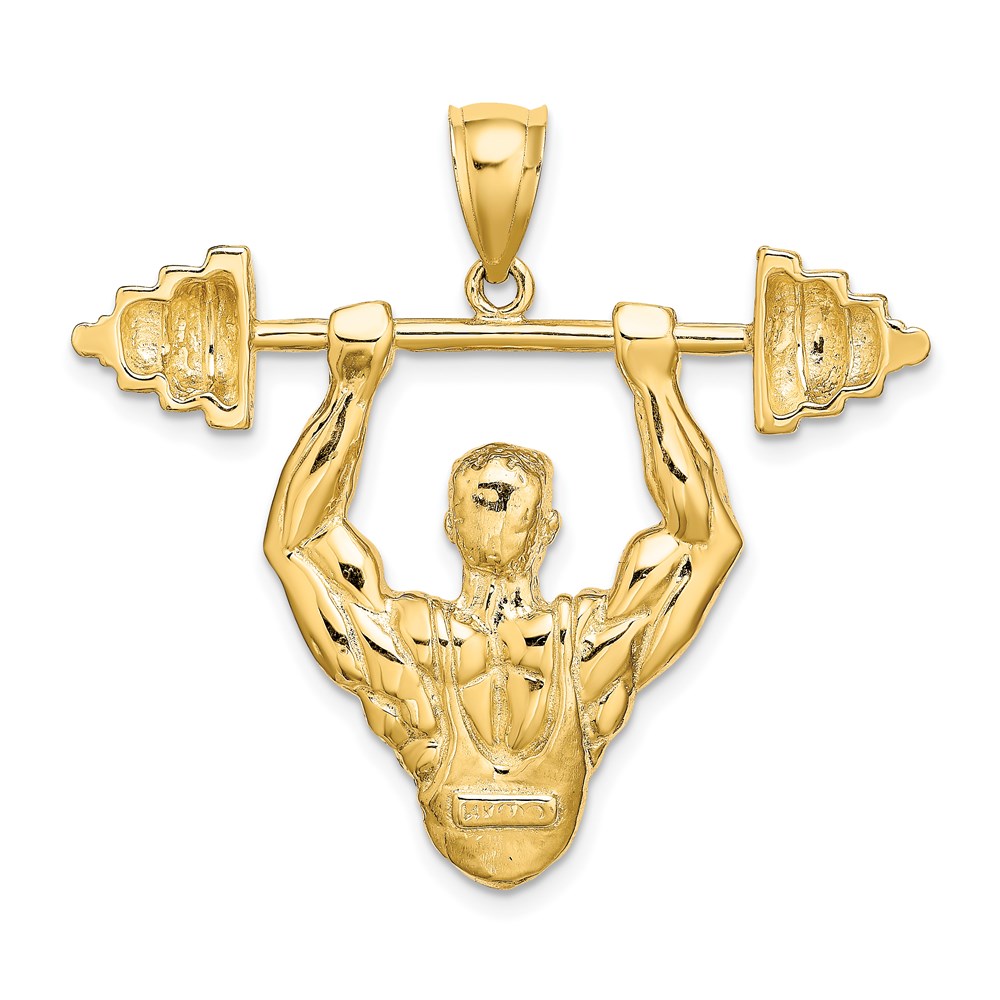 14K Bodybuilder Waist Up with Barbell Pendant