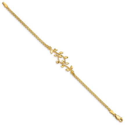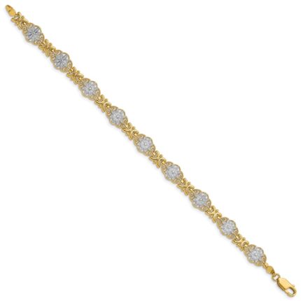 14K Brushed and Diamond-cut Plumeria Floral 7.25 inch Bracelet