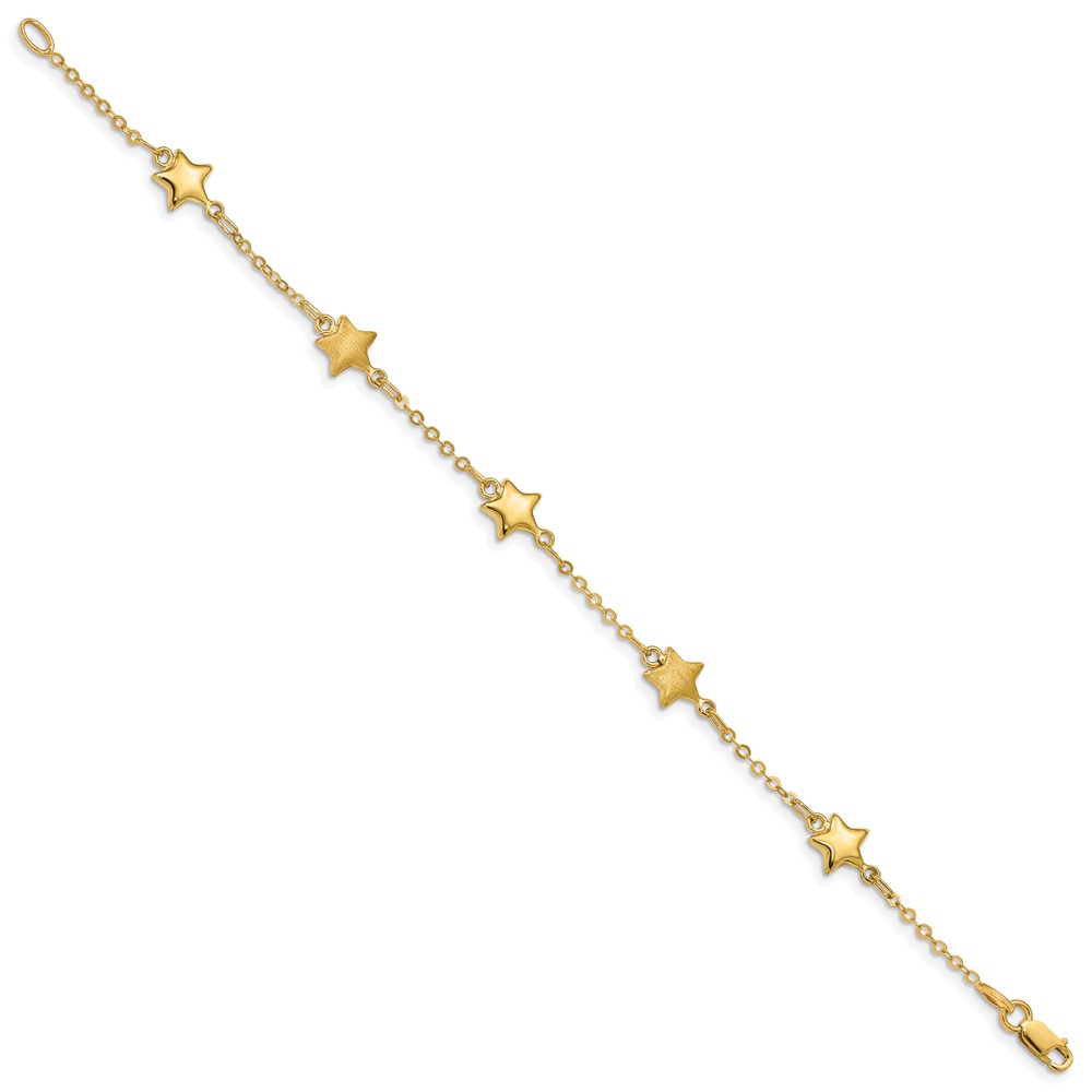 14K Brushed and Polished Puffed Stars 5-Station 7 inch Bracelet