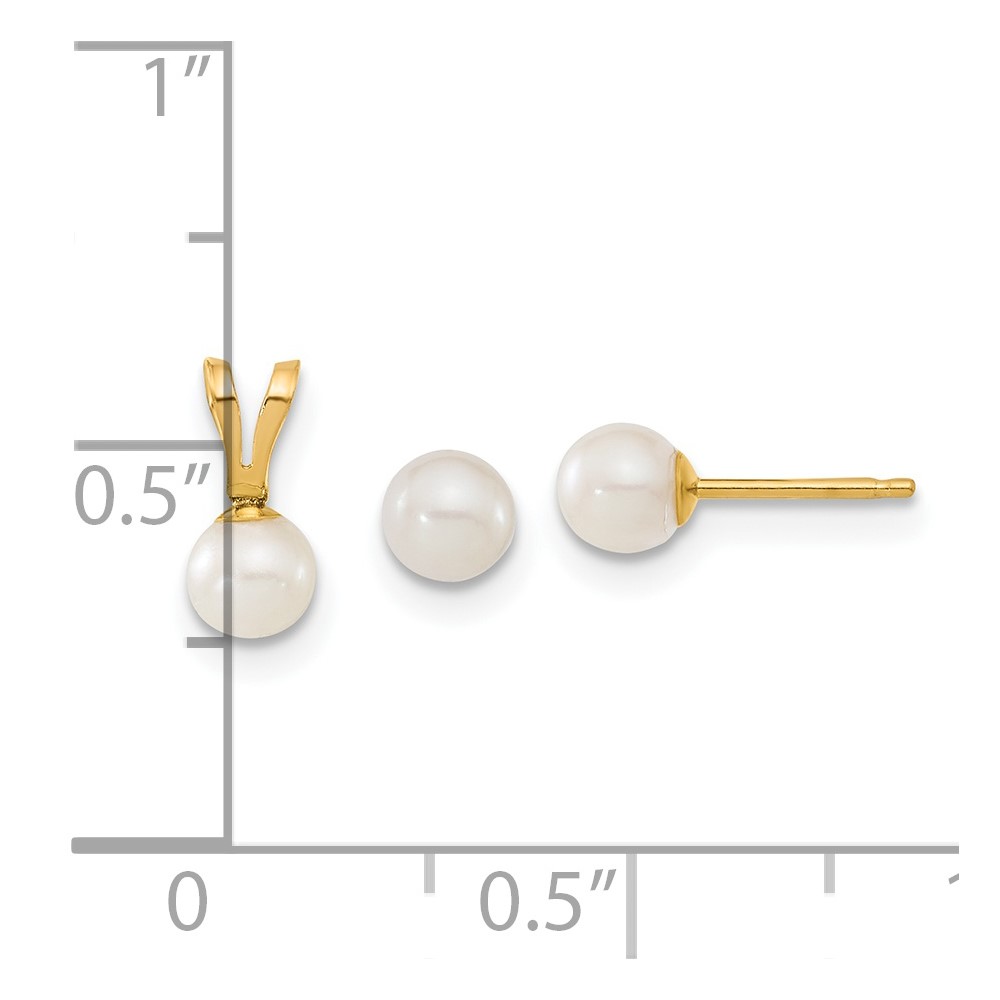14k Children’s 4-5mm White Round Freshwater Cultured Pearl Pendant and Post Earrings Set