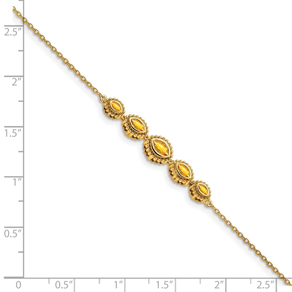 14k Complete 5-Stone Bezel-set Marquise Citrine and Chain 7 inch Bracelet