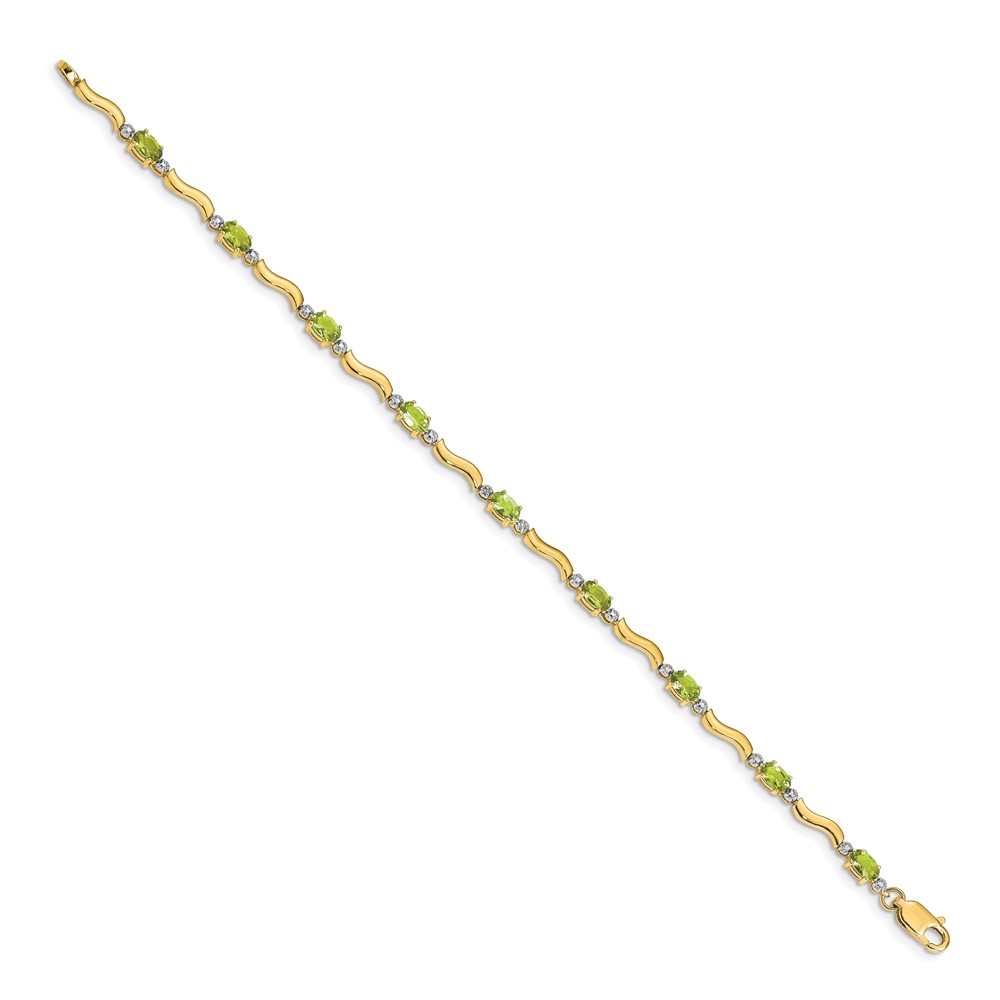14k Complete Diamond and Oval Peridot Wavy Link 7 inch Bracelet